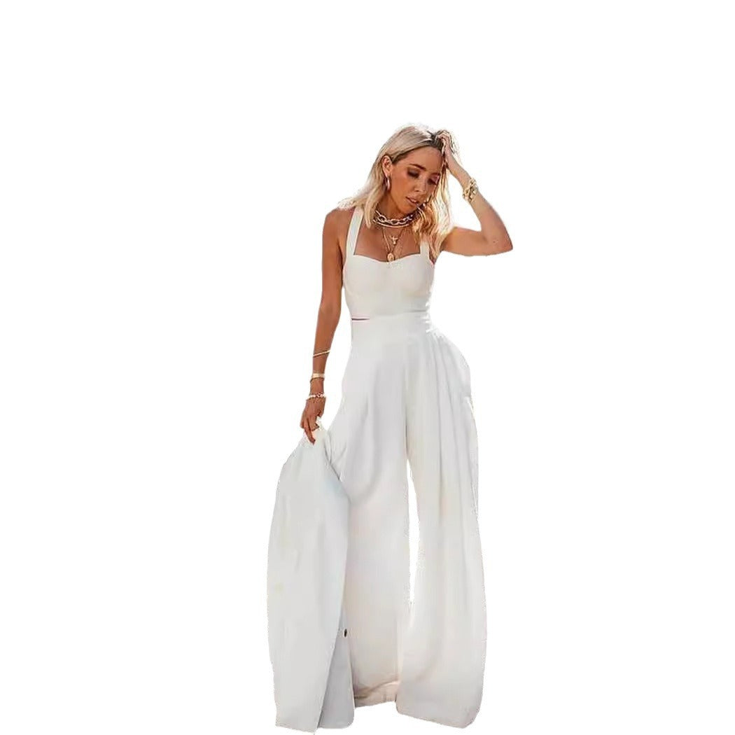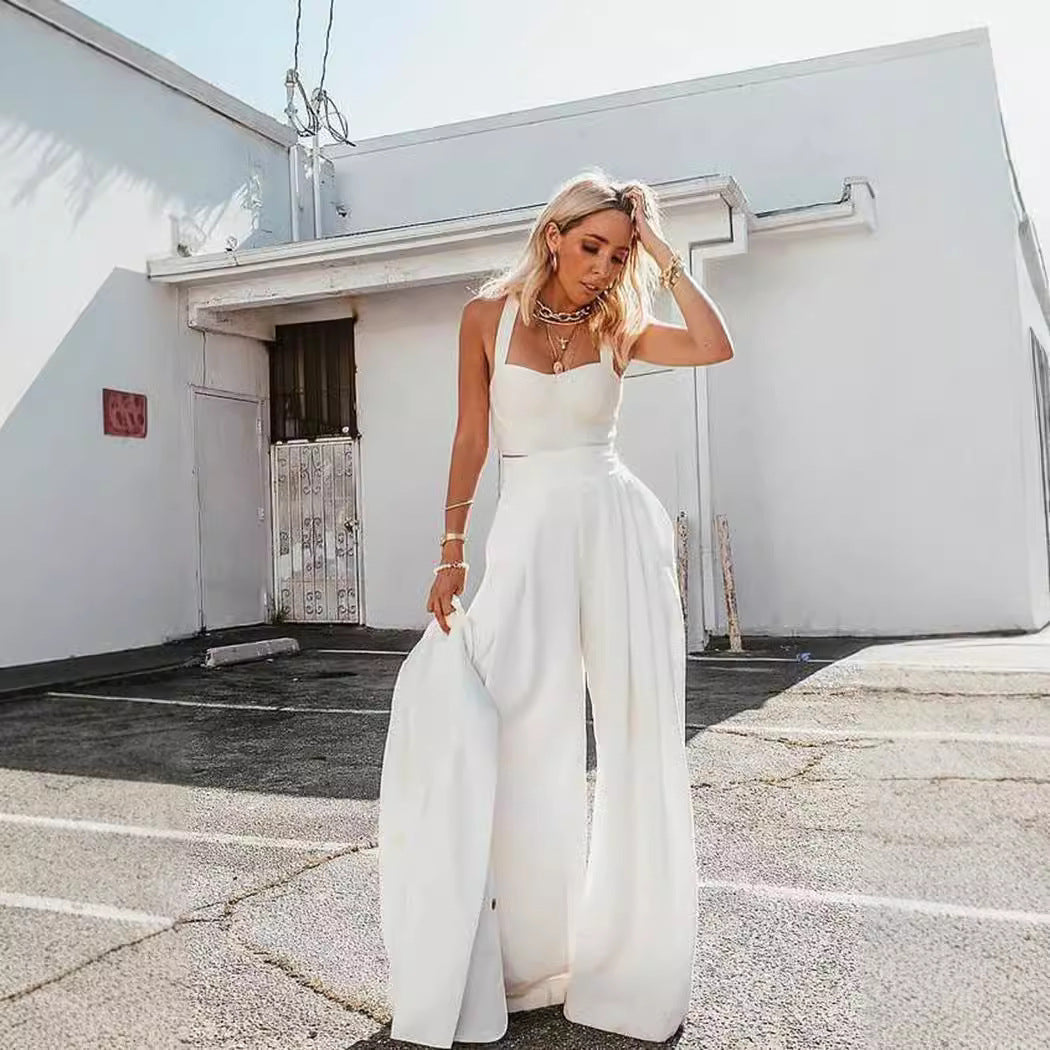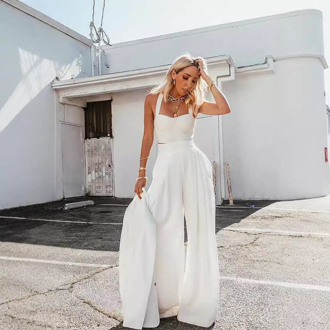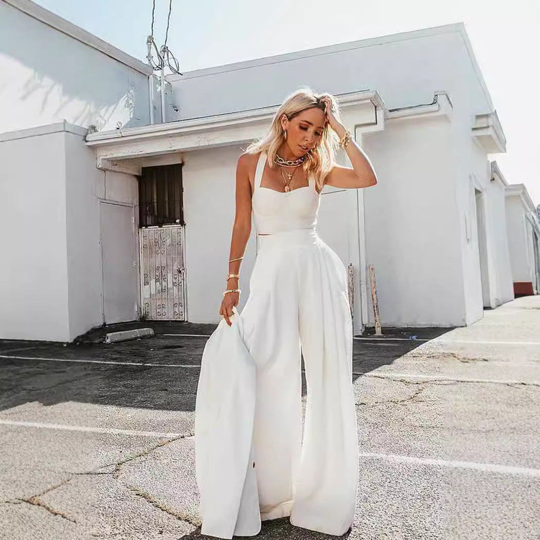 Sexy Spaghetti Straps Chest Wrap Vest Casual Loose Trousers Two-piece Set